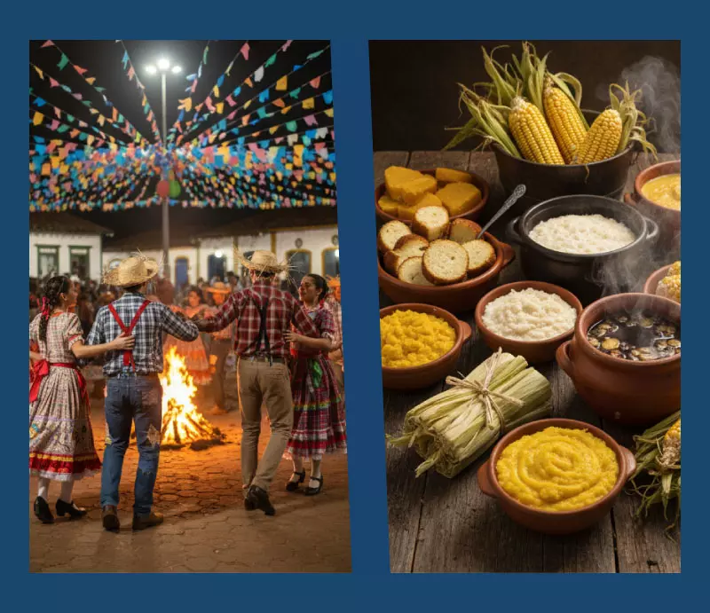 Tradición y Folclore: La Festa Junina rinde homenaje a santos como San Antonio, San Juan y San Pedro. Se caracteriza por sus danzas de cuadrilla, vestimentas típicas caipiras (campesinas), y hogueras que simbolizan la purificación.